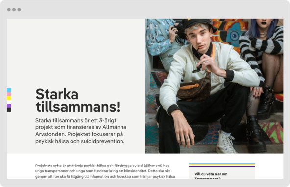 Transammans arbetar rikstäckande med att påverka, stödja och utbilda. Genom lokalföreningar kan de erbjuda trygga mötesplatser för både transpersoner och närstående.