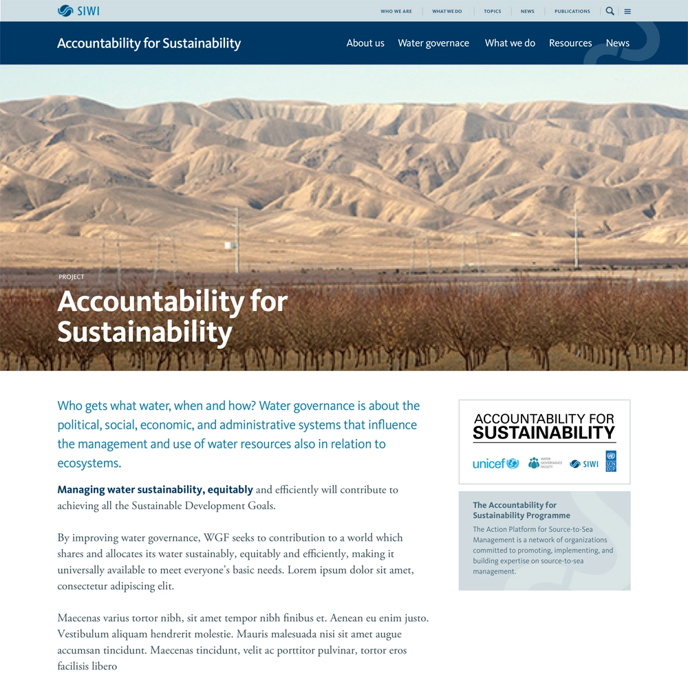 Vi har nu samlat alla webbplatser på ett ställe – siwi.org som portal inte bara för hela organisationen och alla deras prioritetsområden men också ett flertal micrositer för SIWIs olika projekt.